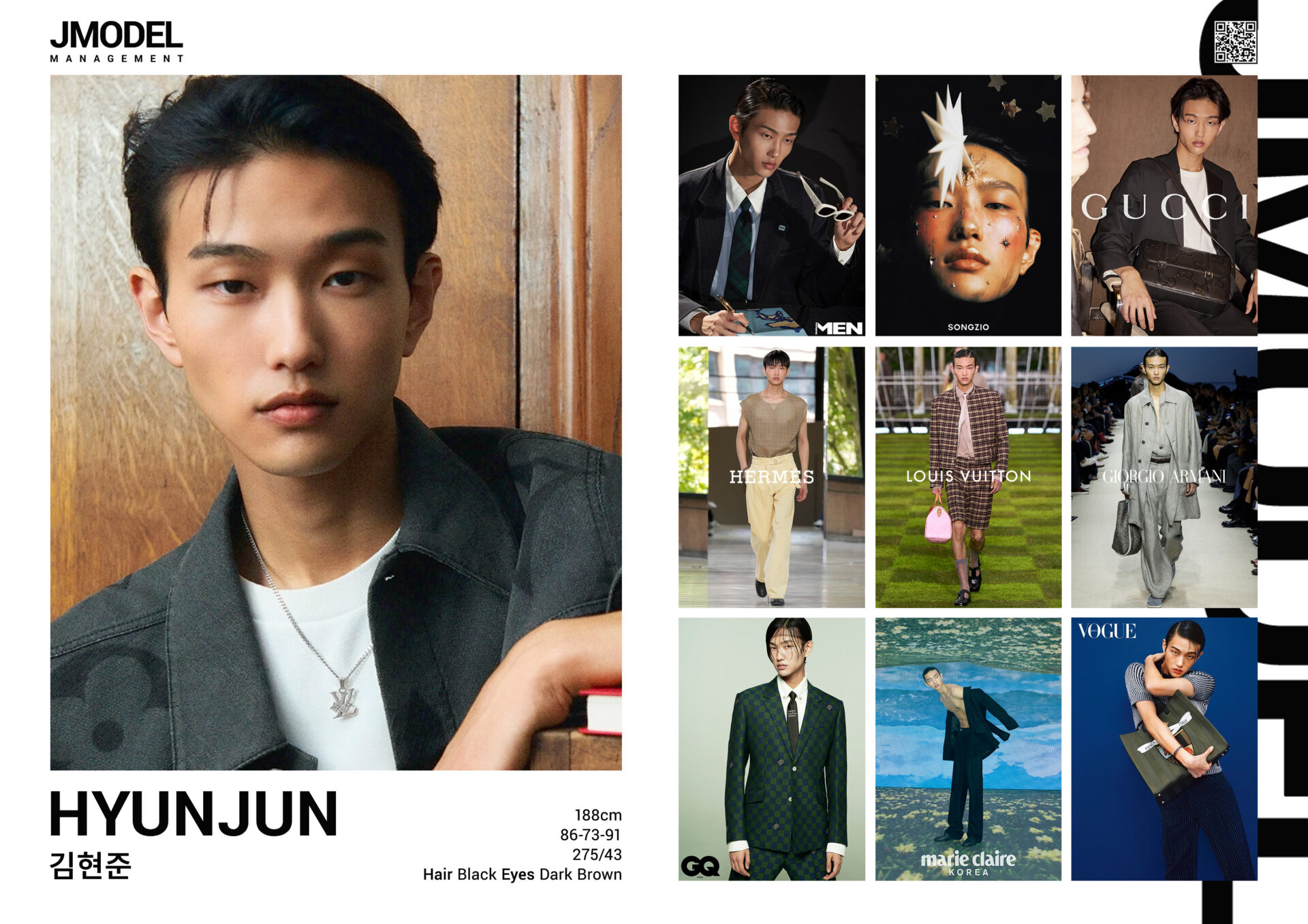 KIM HYUN-JUN Posted on by KIM HYUN-JUN height 188 Chest 29 waist 29 hips 36 shoes 275/43.5 hair black eyes dark brown Compcard Listed on Models.com