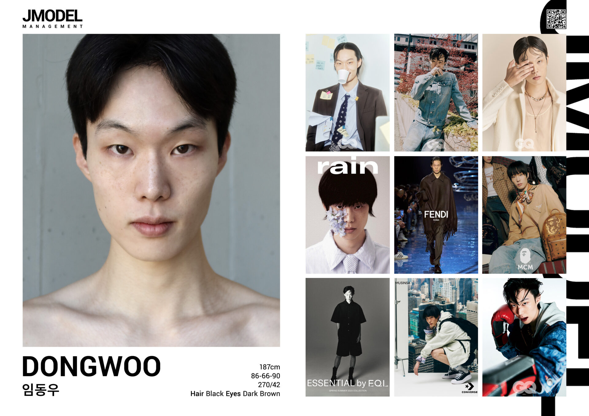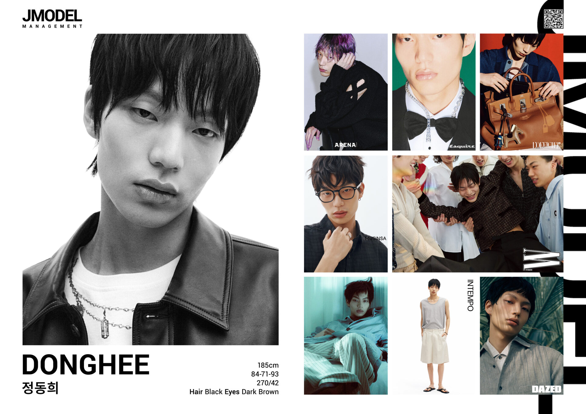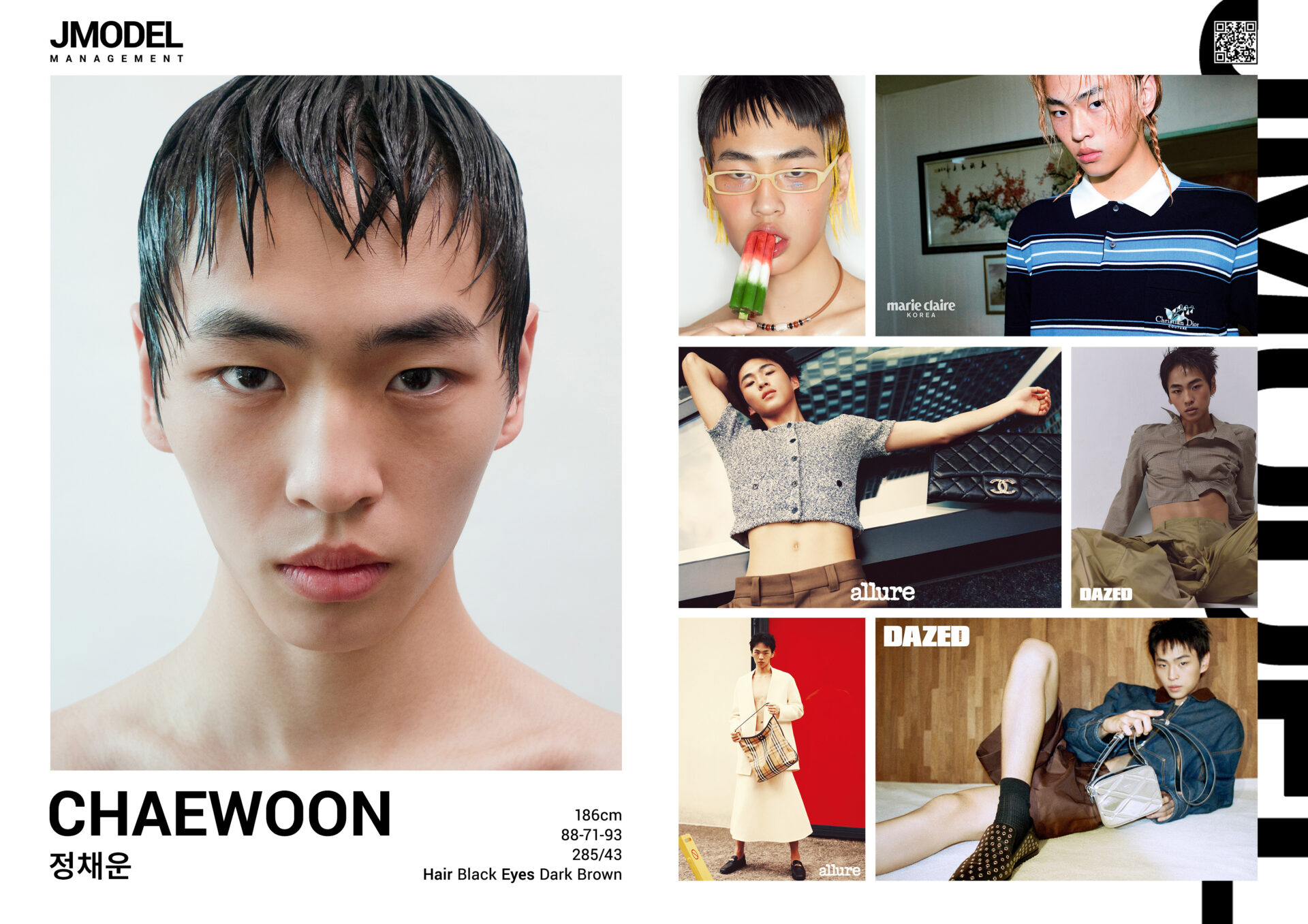 JUNG HYO-JIN Posted on by JUNG HYO-JIN height 186 Chest 33 waist 27 hips 34 shoes 280/43 hair black eyes dark brown Compcard Listed on Models.com