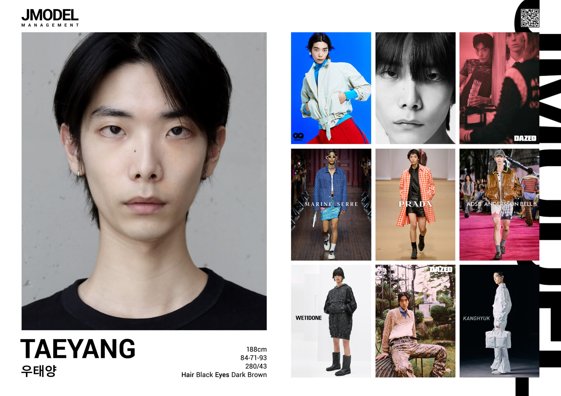 WOO TAE-YANG Posted on by WOO TAE-YANG height 188 bust 33 waist 28 hips 37 shoes 280/43 hair black eyes brown CompcardListed on Models.com