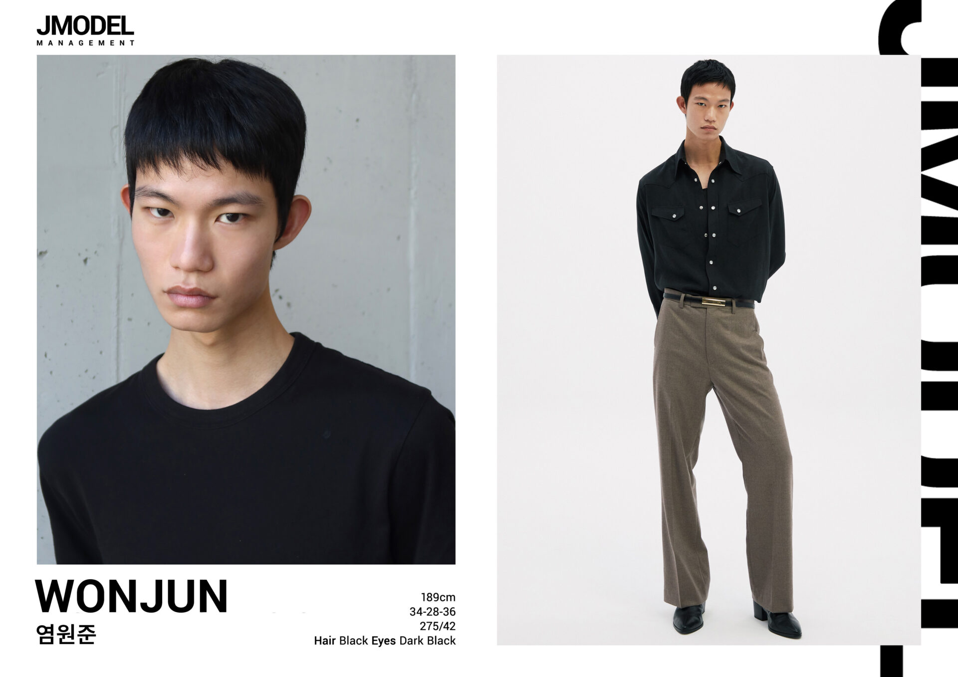 YEOM WON-JUN Posted on by YEOM WON-JUN height 189 chest 34 waist 28 hips 36 shoes 275/42 hair black eyes black Compcard