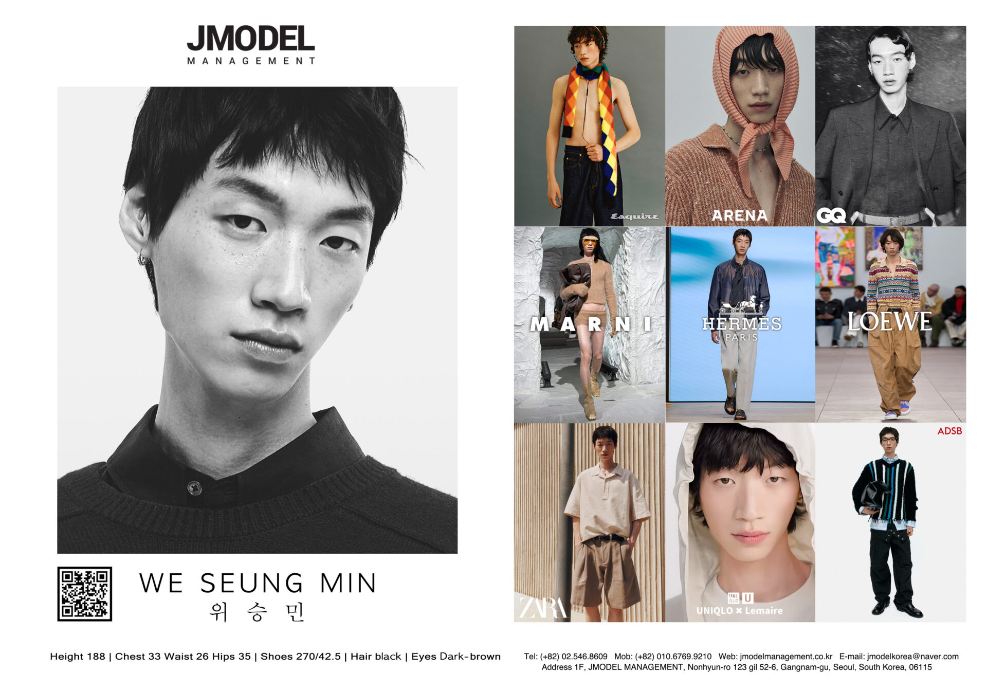 WE SEUNG-MIN Posted on by WE SEUNG-MIN height 188 bust 33 waist 26 hips 35 shoes 270/42.5 hair black eyes dark brwon CompcardListed on Models.com