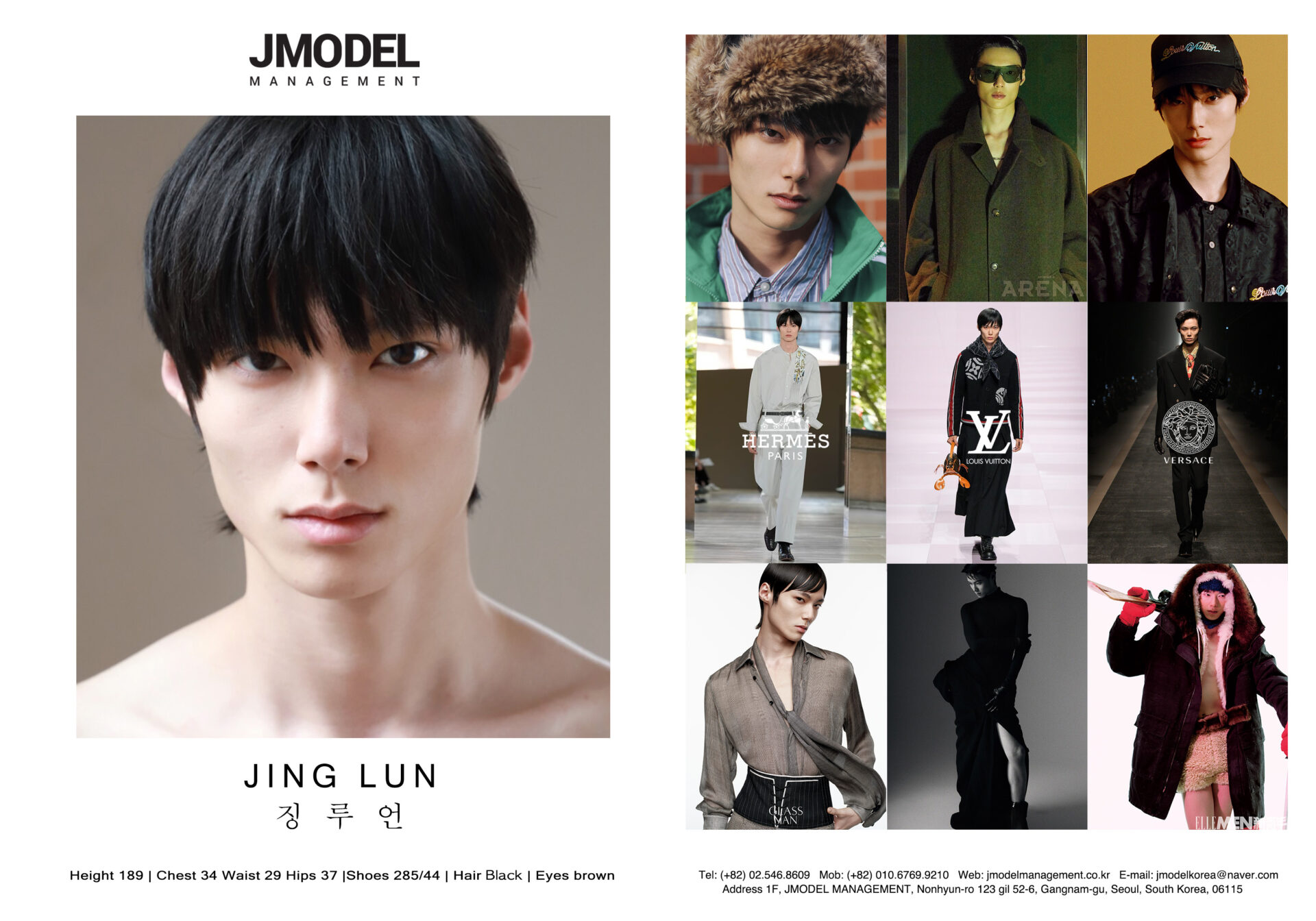 JING LUN Posted on by JING LUN height 189 Chest 34 waist 29 hips 37 shoes 285/44 hair black eyes brown Compcard Listed on Models.com