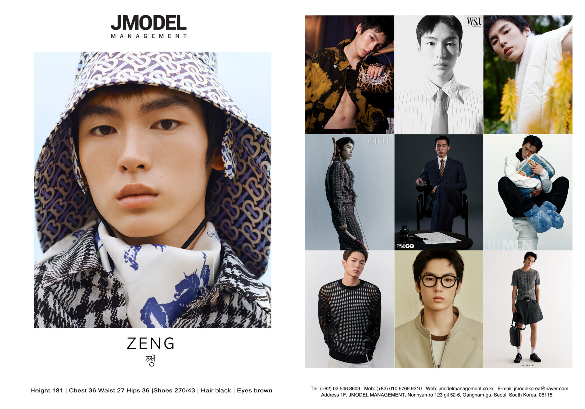 ZENG Posted on by ZENG height 181 chest 36 waist 27 hips 36 shoes 270/43 hair black eyes dark brown Compcard
