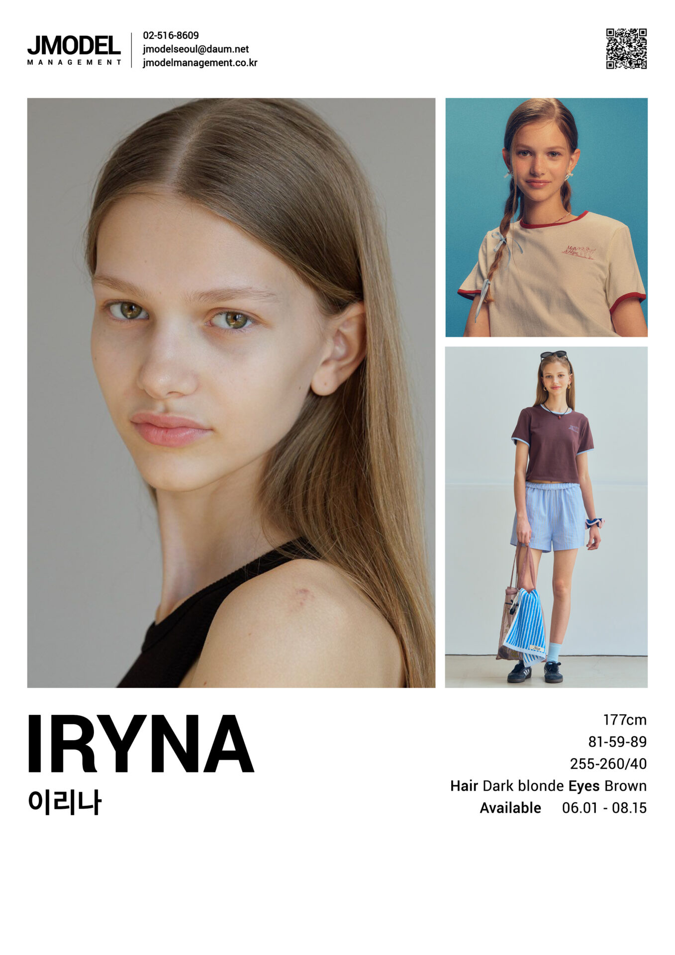 IRYNA Posted on by IRYNA 이리나 (해외체류중) height 177 bust 81 waist 59 hips 89 shoes 250/40 hair dark blonde eyes brown Compcard
