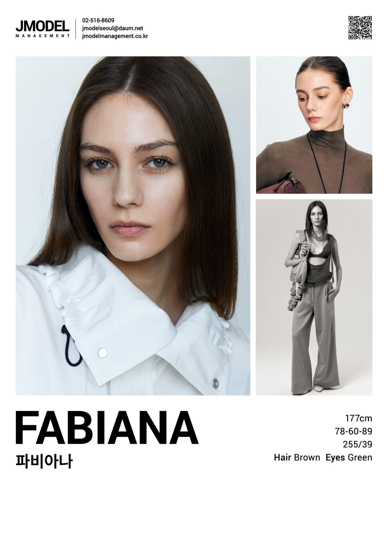 FABIANA Posted on by FABIANA height 177 bust 78 waist 60 hips 89 shoes 255/39 hair brown eyes green Compcard